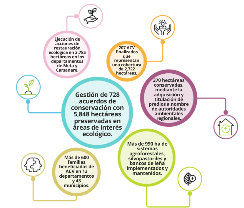 Los acuerdos de voluntarios de conservación son uno de los modos/mecanismo incluido en la normativa que favorecen la conservación conjunta entre Ecopetrol y comunidades locales de ecosistemas estratégicos tales como bosques de galería, morichales, nacimientos de agua, entre otros. Así mismo incluyen incentivos a la conservación que buscan el uso sostenible de la biodiversidad tales como meliponarios, sistemas agroforestales, sistemas silvopastoriles, bancos dendroenergéticos, y/o ofrecen alternativas como paneles solares, estufas ecoeficientes y cosechas de agua.
