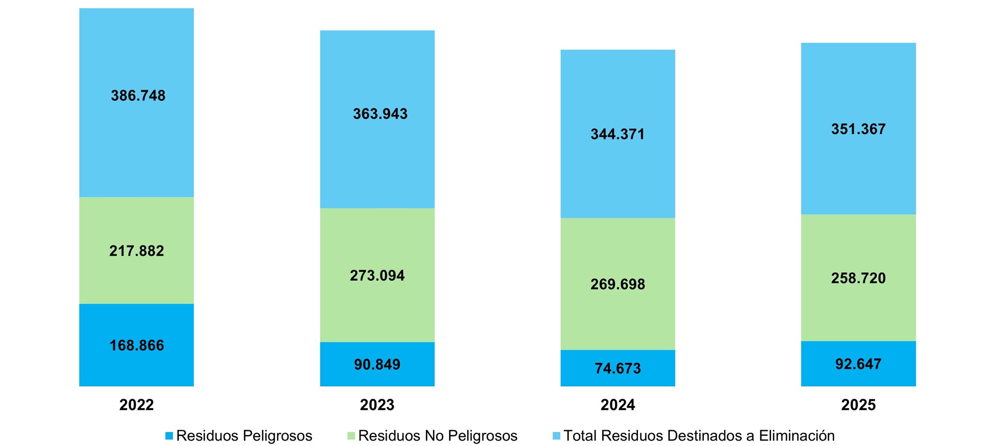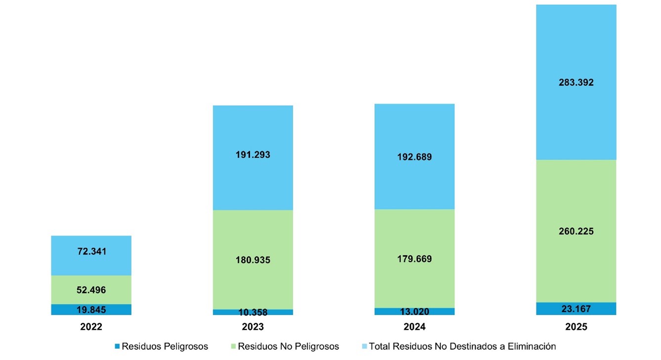 Fuente: los datos son extraídos de la herramienta SAP-Waste Management (SAP-WA) para el período 2022, para 2023-2025 se extraen del aplicativo MARS-E.