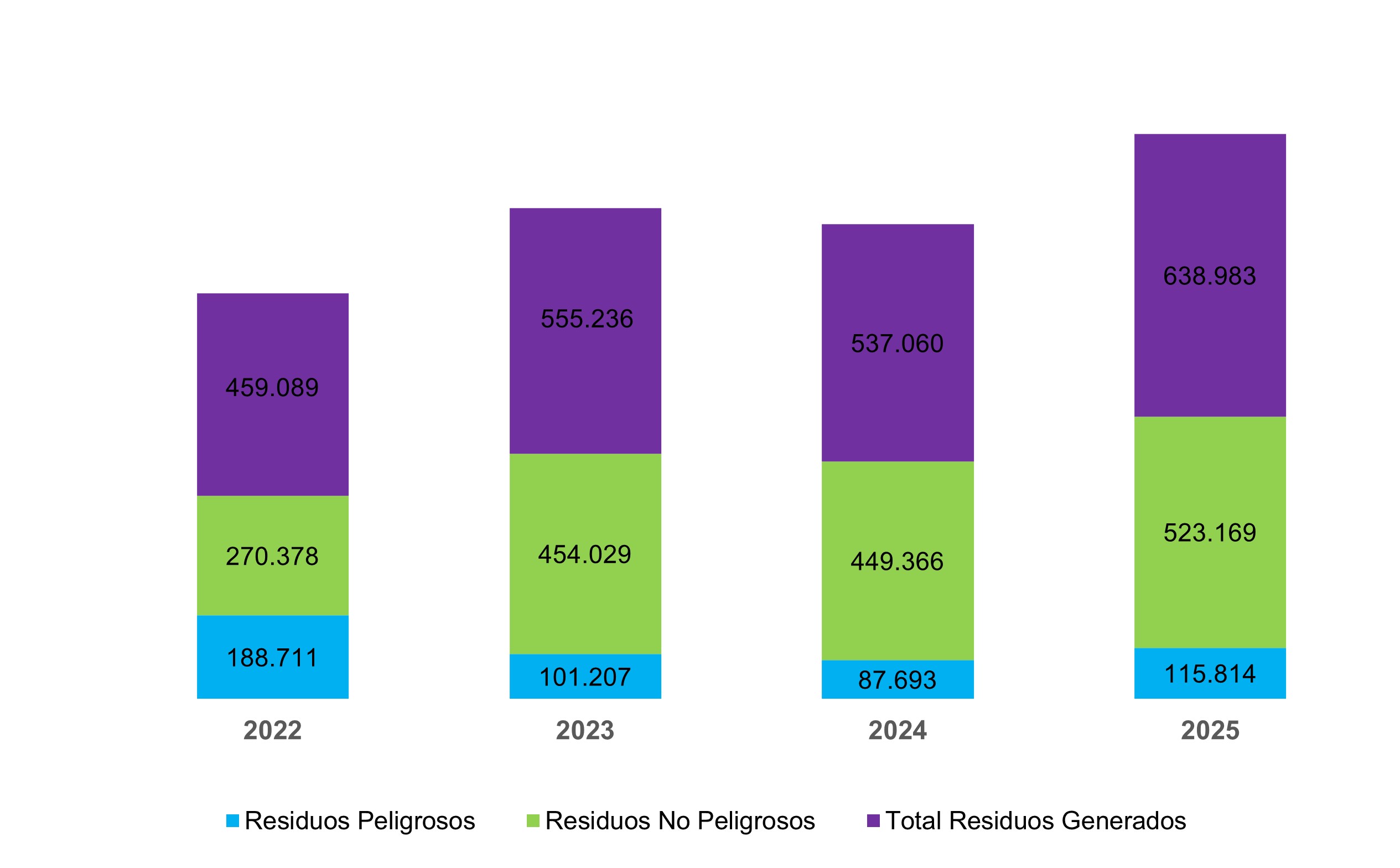 Nota: La generación de residuos 2025 no incluye los residuos derivados de la atención de incidentes cuya causa se atribuye a terceros.