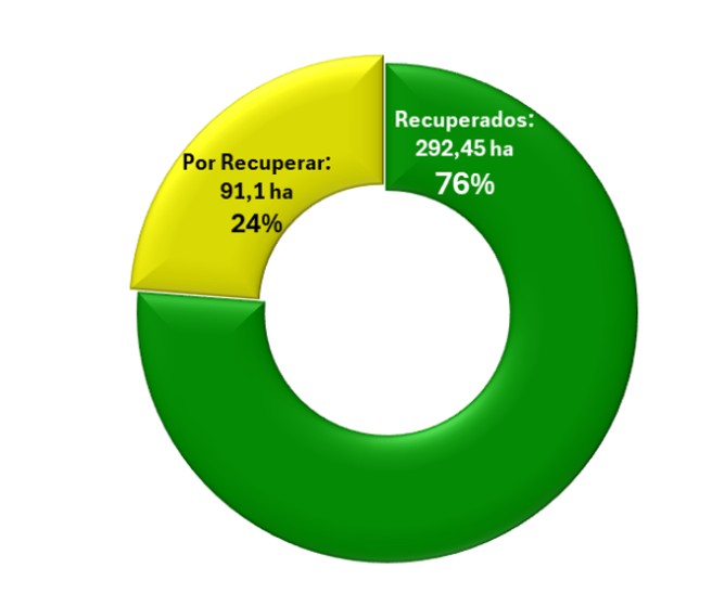 Se han recuperado: 292,45 ha, equivalentes al 76% del total