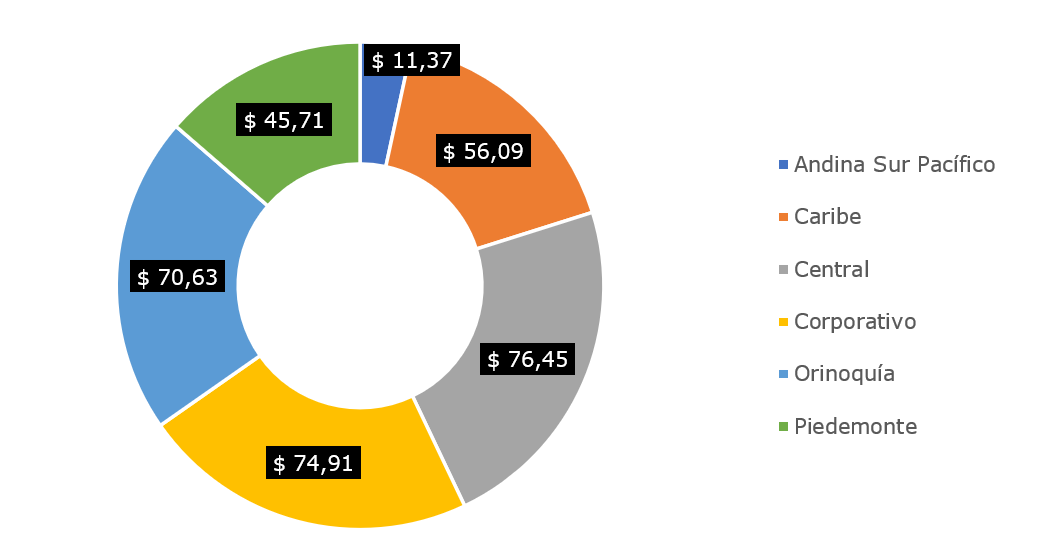 Nota. La información clasificada como Regional "Corporativo" corresponde a inversiones de alcance nacional que se ejecutan en varios departamentos y/o municipios. Esta categoría también incluye las inversiones realizadas por fuera de Colombia (ISA)