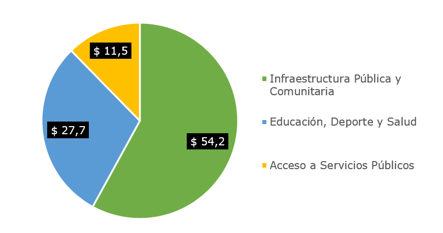 El 14% corresponde a los proyectos construcciones viales, mejoramientos de Instituciones Educativas, adecuaciones de infraestructura. |