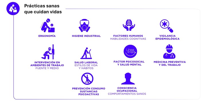 La Salud Ocupacional en Ecopetrol gestiona de forma anticipada y proactiva los riesgos laborales, buscando promover, mantener y mejorar la salud física, mental y social de las personas; contribuye a la prevención de las enfermedades laborales por medio de un conjunto de actividades interdisciplinarias de identificación, gestión de los peligros y riesgos presentes en los ambientes de trabajo, tanto en la operación actual de los activos, como en las fases de diseño de los nuevos proyectos y en actividades laborales que se desarrollen en la modalidad de teletrabajo u otras que defina Ecopetrol.