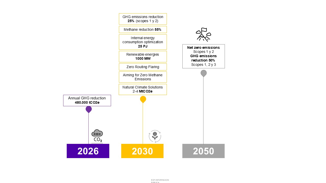 As part of Ecopetrol’s efforts to contribute to the Sustainable Development Goals, the Paris Agreement, and Colombia’s Nationally Determined Contribution (NDC), the company reaffirms its commitment to achieving net zero greenhouse gas (GHG) emissions by 2050 (Scopes 1 and 2) and to advancing a just and equitable energy transition.