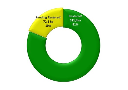 Restored: 311,4 ha, equivalent to 81% of the total
